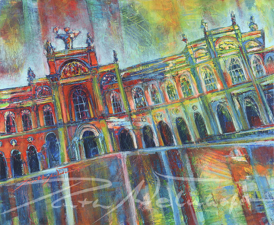 Diese andere Perspektive , bei der gegenständliche Kunst und Abstraktion eine beeindruckende Symbiose eingehen, eröffnet einen völlig neuartigen Eindruck altehrwürdiger, mächtiger Gebäude und Parks aus Epochen der Gotik, des Barocks, aus Klassizismus und Jugendstil, sowie der Moderne.